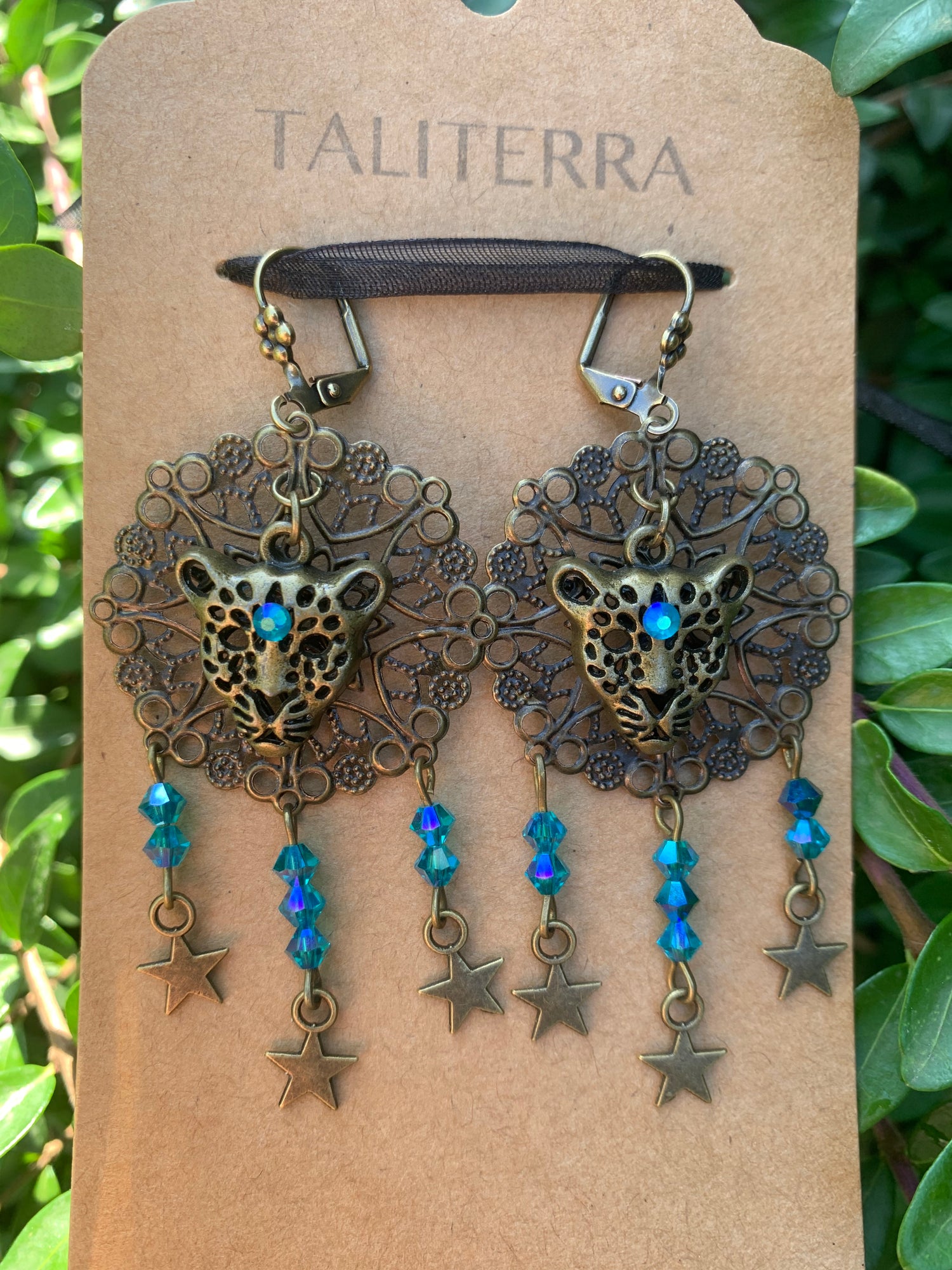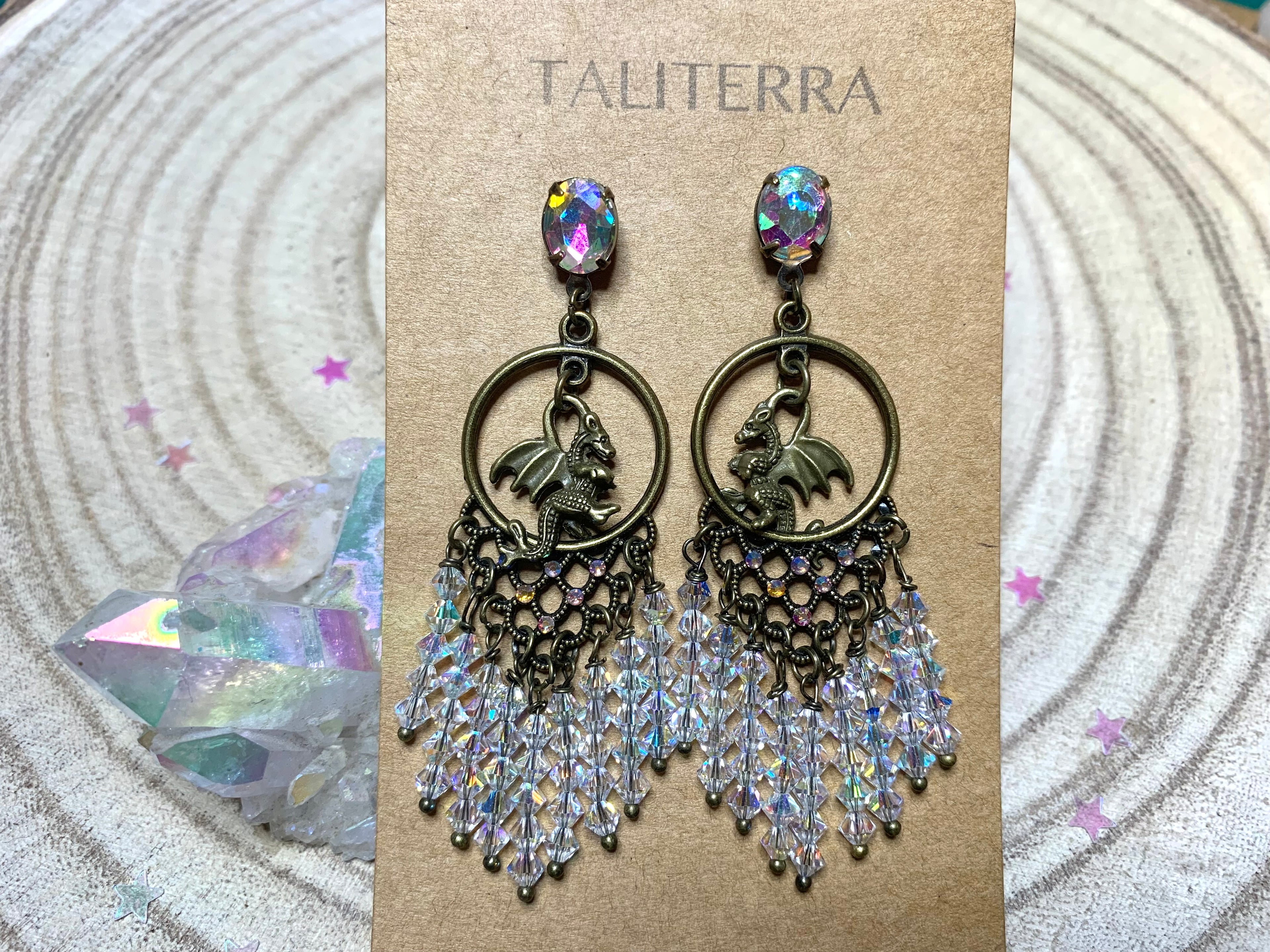Boucles d'oreilles avec pierres de verre autrichiennes bleues aurore boréal