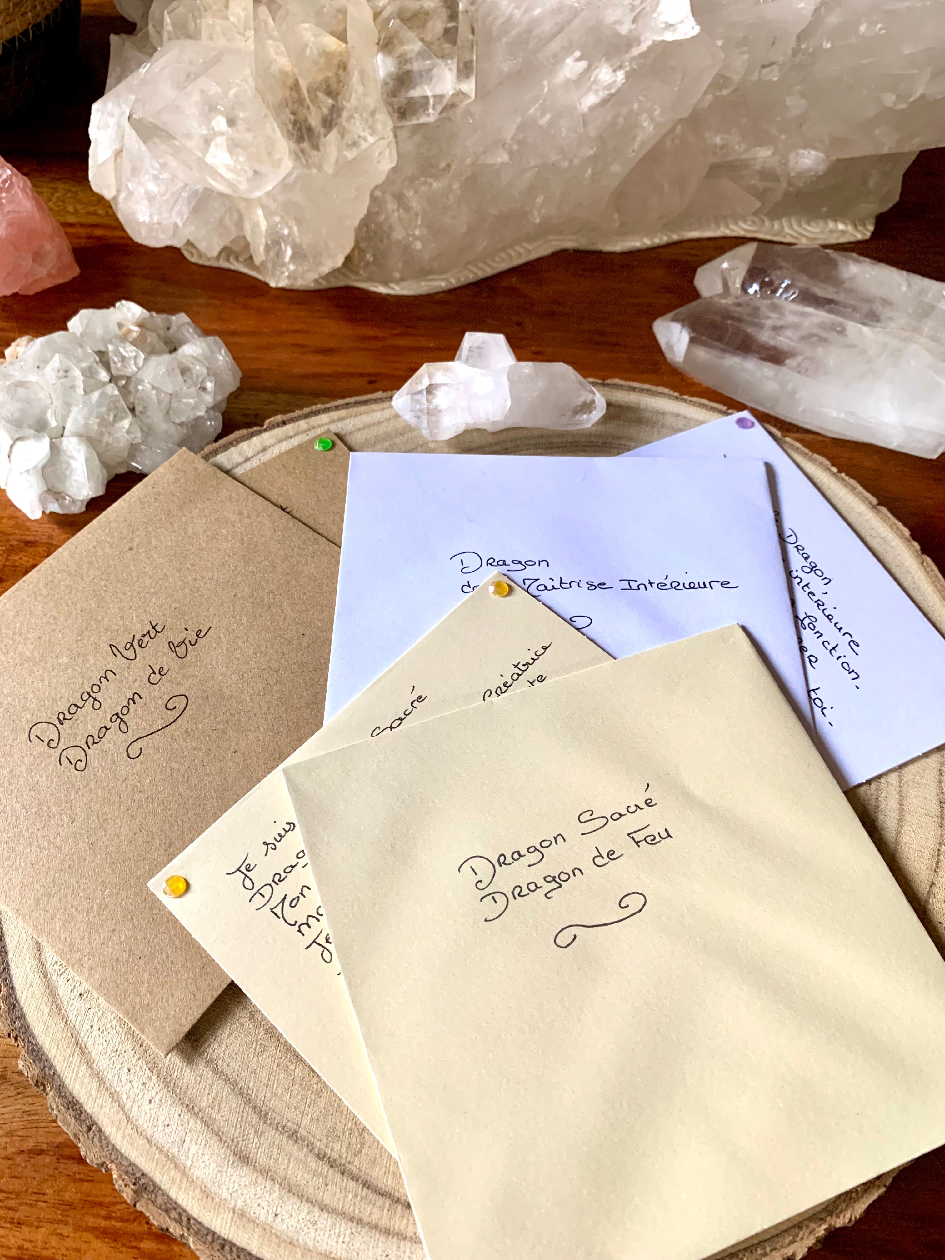 Retrouvez dans cette collection l'énergie et l'aide de Consciences Dragons avec un Dragon d'eau, un Dragon de Vie, un Dragon portail du coeur et un Dragon cristal.